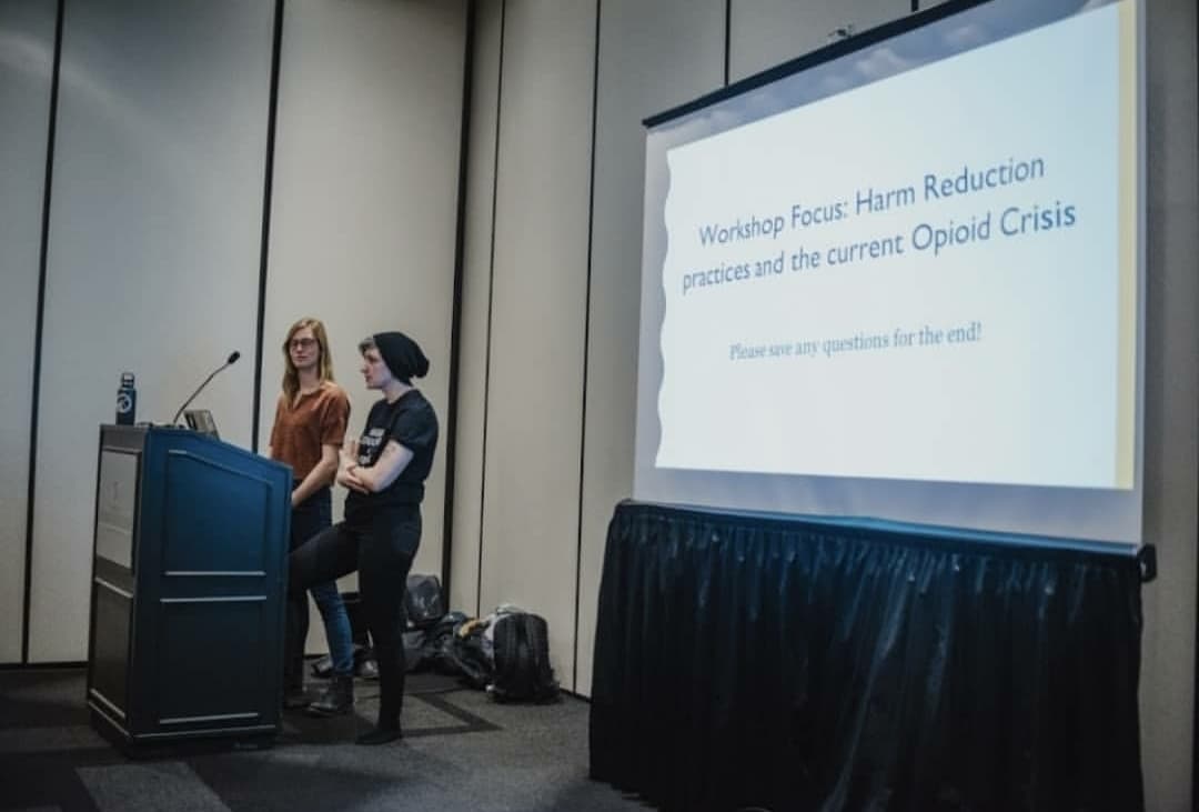This workshop was supported by Caroline Marchionni and Melanie Gauthier and lab faculty and staff Amélie Samson, Khaleda Begum and Line Robitaille. At the Harm Reduction and Naloxone Training workshop, VASC President Miranda Harrington co-facilitated with Leigh Hoffman to provide attendees with basic knowledge of harm reduction strategies in the current opioid crisis. Fifty participants were also trained in the administration of naloxone as an opioid overdose intervention and given the opportunity to practice intramuscular injection techniques