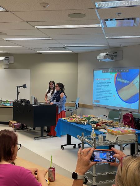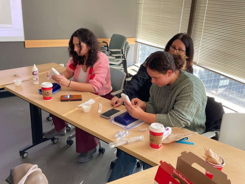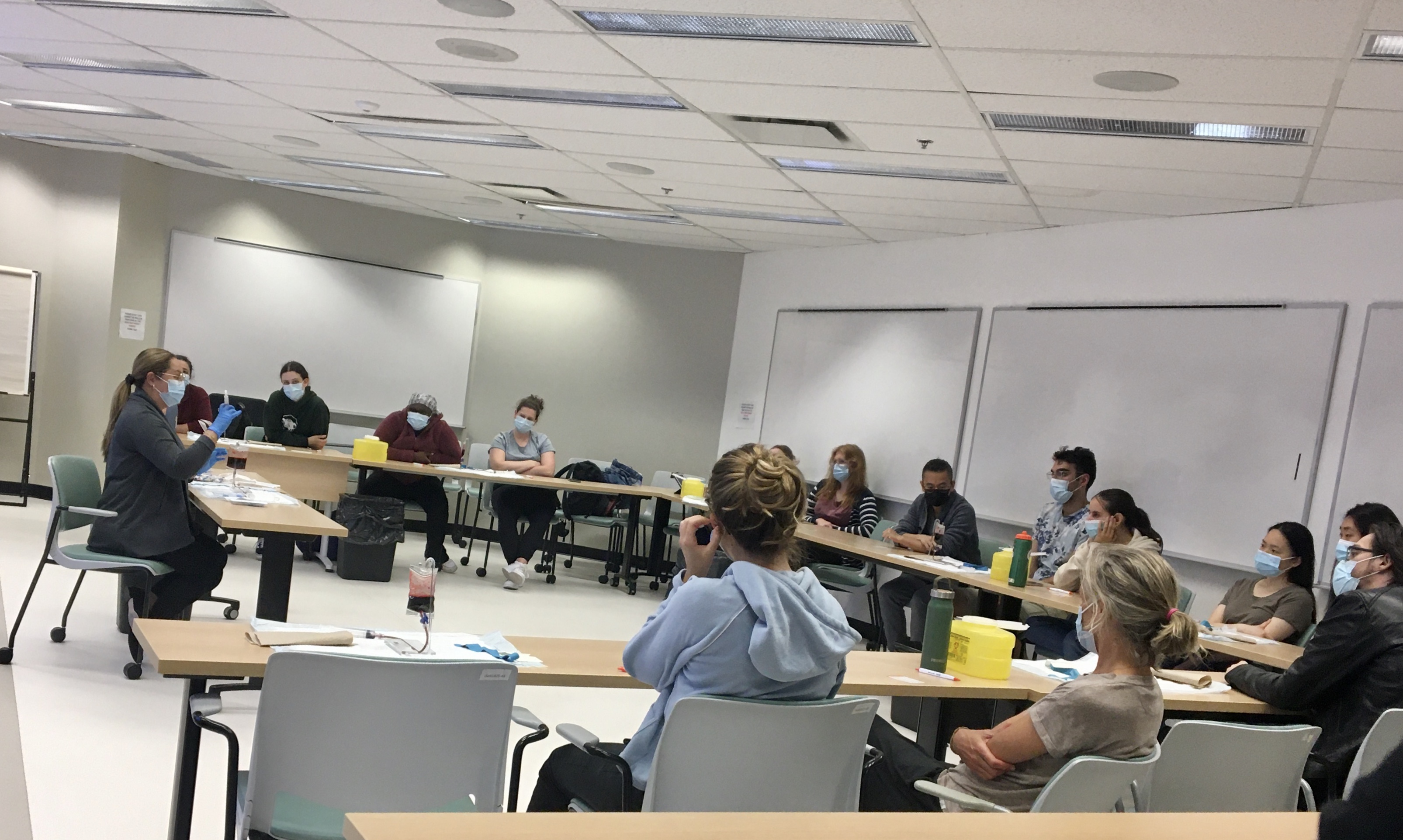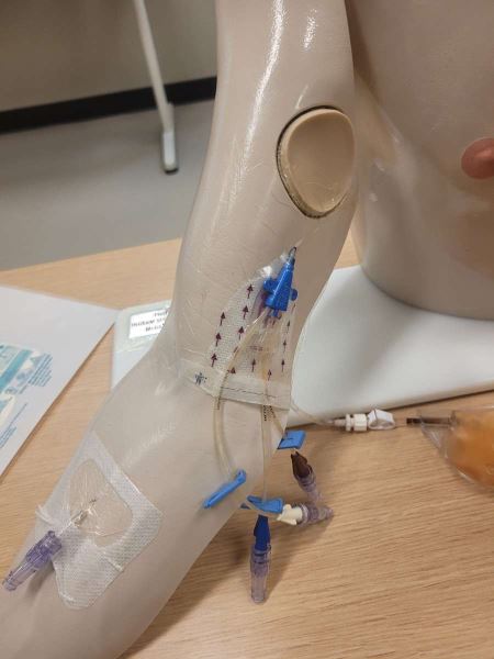 The workshops were entitled "Making Vascular Access a Success: PIV Innovations" and "Harm Reduction and Naloxone Training". The PIV workshop was facilitated by Madi Connolly and Catherine Farmer, U3 BScN students. It consisted of an introduction to intraosseous vascular infusion and insertion techniques. It was followed by PIV insertion practice, supported by BBraun of Canada. Fifty students, from across Canada, were also able to try the ISON lab's vein light.