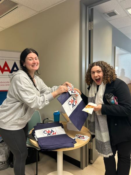 On January 25, 2020, The Vascular Access Student Club led four successful workshops, hosting 100 students from across Canada, at the Canadian Nursing Students' Association annual conference on Montreal, Quebec. The workshops were entitled "Making Vascular Access a Success: PIV Innovations" and " Harm Reduction and Naloxone Training." The PIV workshops were facilitated by VASC VP Internal and External, Madi Connolly and Catherine Farmer. Each PIV workshop consisted of an introduction to intraosseous vascular infusion and insertion techniques, PIV insertion practice supported by BBraun of Canada, and each student was given the opportunity to operate the Ingram School of Nursing (ISON) lab's vein light. At the Harm Reduction and Naloxone training workshops, VASC President, Miranda Harrington, co-facilitated with Leigh Hoffman to provide attendees with knowledge of harm reduction strategies in the context of the opioid crisis. Participants were also trained in the administration of naloxone as an opioid overdose intervention, and given the opportunity to practice intramuscular injection techniques. These workshops were put together with the generous support of the McGill ISON faculty members, including Caroline Marchionni, Mélanie Gauthier, Amélie Samson, Khaleda Begum, and Line Robitaille.