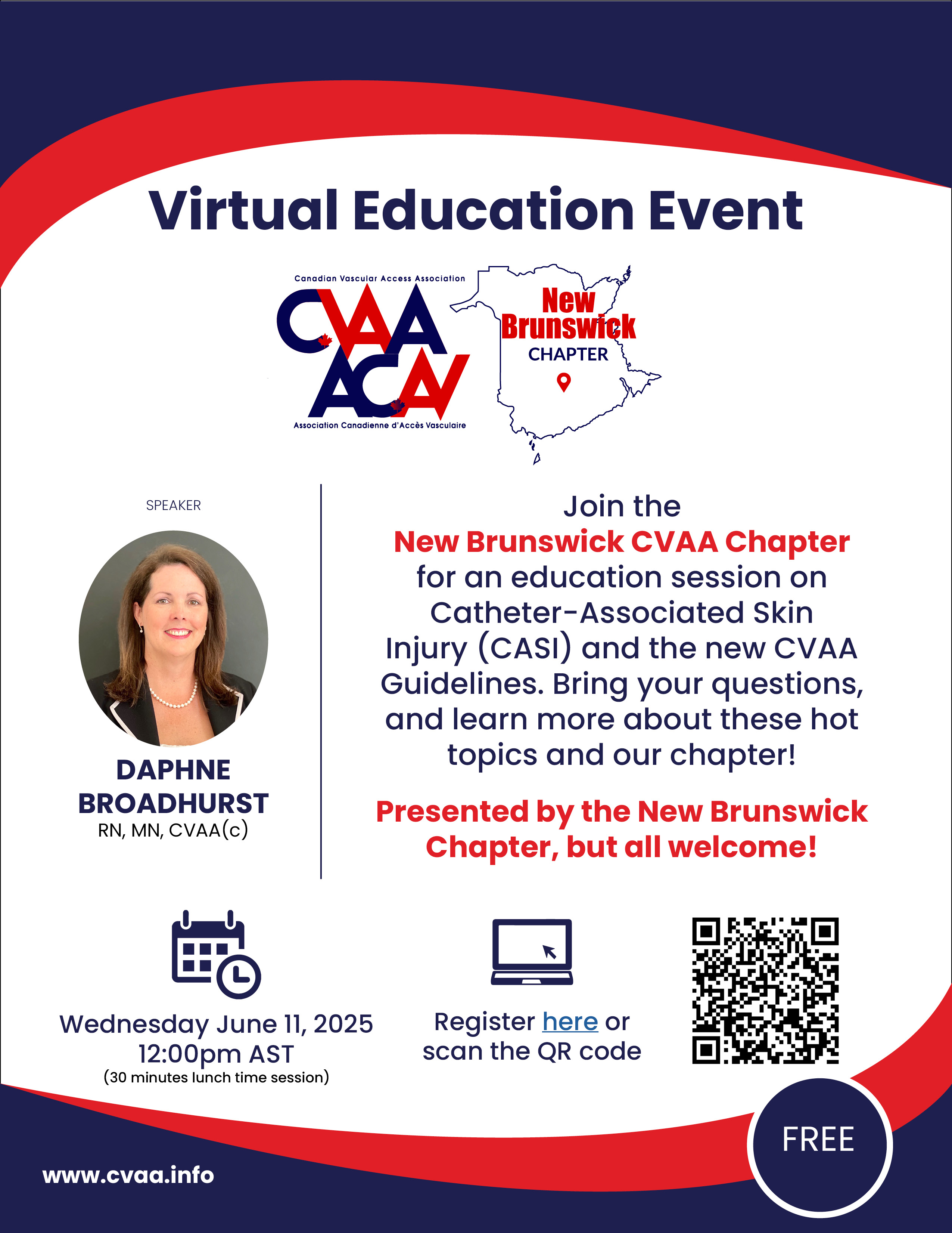ARCHIVED SESSION: June 11, 2025 (full flyer here) New Brunswick CVAA Chapter Education Event featuring CVAA Guidelines and CASI presented by Daphne Broadhurst, RN, MN, CVAA(c) To access the recording, log in and view under Members Area> CVAA Webinar Series