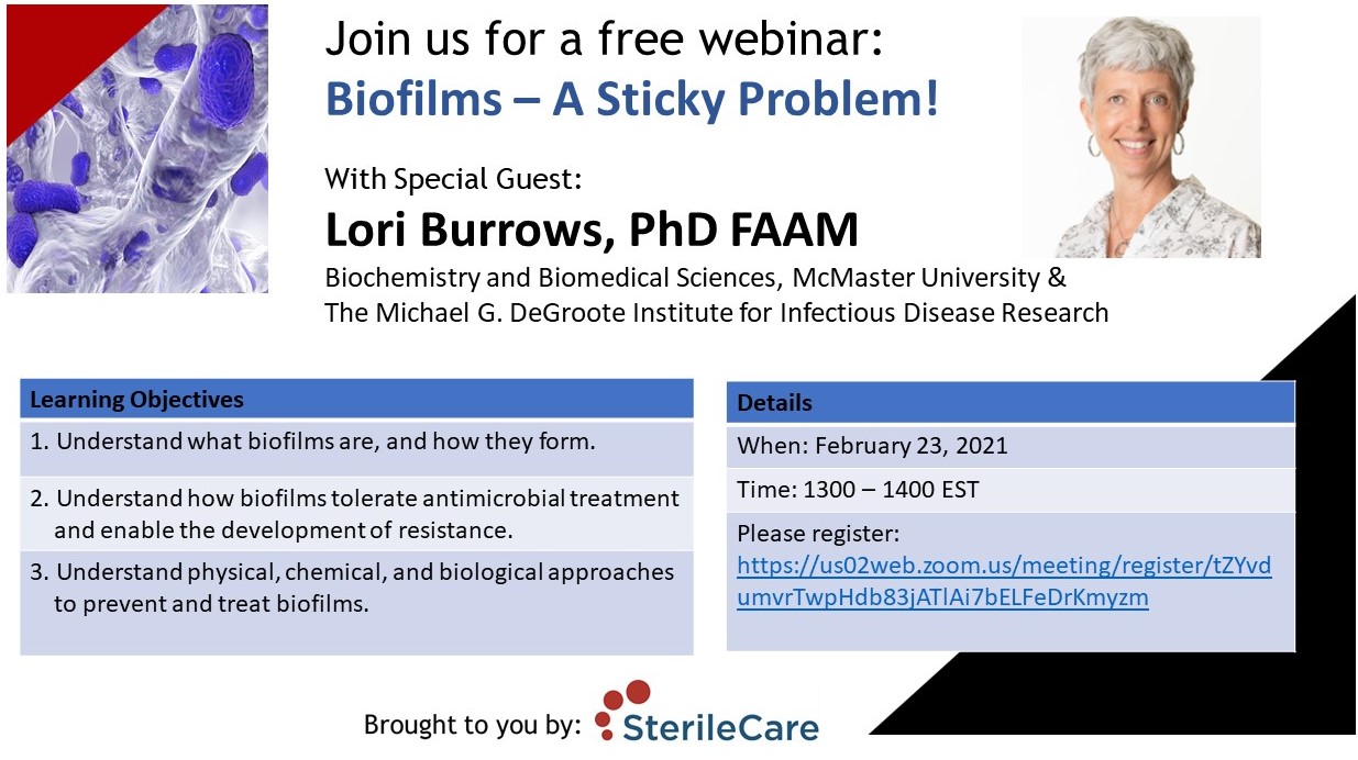 December 2, 2020 (full flyer here) - Antimicrobial Stewardship: Talk dirty to me! PART DEUX: Gena Loheswaran, PhD (Sponsored by SterileCare) To access the recording, log in and view under Members Area> CVAA Webinar Series