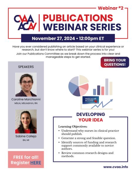 - Source writers, topics, and manuscripts and contribute to content items for the CVAA journal Vascular Access